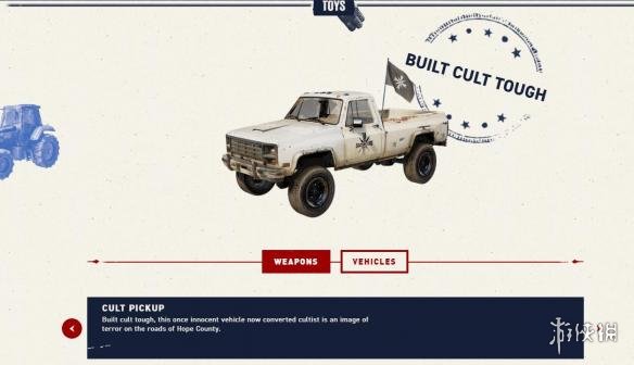 这种卡车没有什么错,不过由于它被邪教徒们用于残忍地传播邪教思想,现在它已经成了希望镇道路上的恐怖化身。