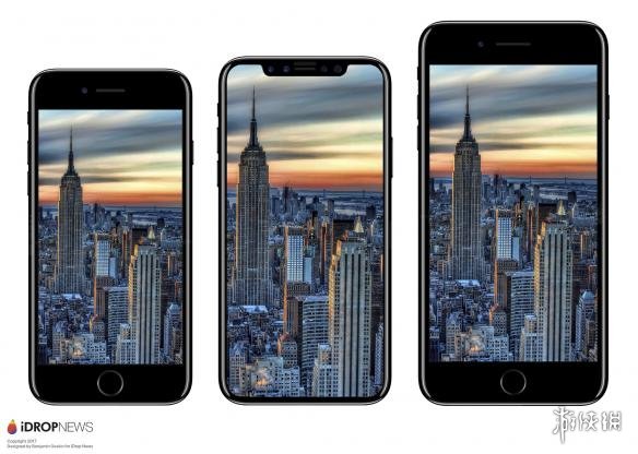 基于这样的数据和最新消息,iDrop News带来新一代iPhone的外形图,并且为了让大家看的更清楚,还有它与iPhone 7、iPhone 7 Plus以及Galaxy S8的对比图,取消Home键、采用全面屏的iPhone 8看起来让人印象深刻。