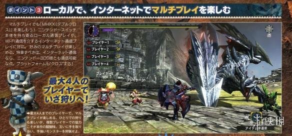 最多可以同时有四位玩家一起进行狩猎。虽然一个人的狩猎也很有趣,但是多人协力才是本作最大的乐趣所在。大家齐心协力,共同狩猎强大的怪物吧!
