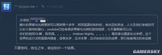 听到《地球OL》依然在开发的消息,有玩家在文章的评论下面表示不信任,而制作组则表示:“不要急吗,有生之年,肯定给你一个结果。”
