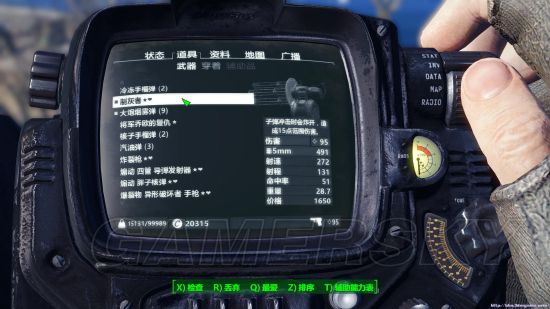 下面的截图是我在工作台上改造后的,加了【传奇效果:爆裂属性】,95伤害!基本秒杀一切活物!所以称之为火神炮不为过!
