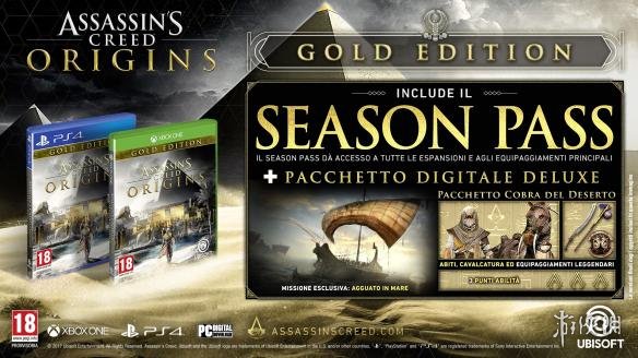 《刺客信条:起源》豪华版将包括一个打印版的手绘世界地图,游戏原声乐和数字版豪华包,包括“海上袭击(Ambush at Sea)”海上任务,沙漠眼镜蛇包和3个能力点数奖励。
