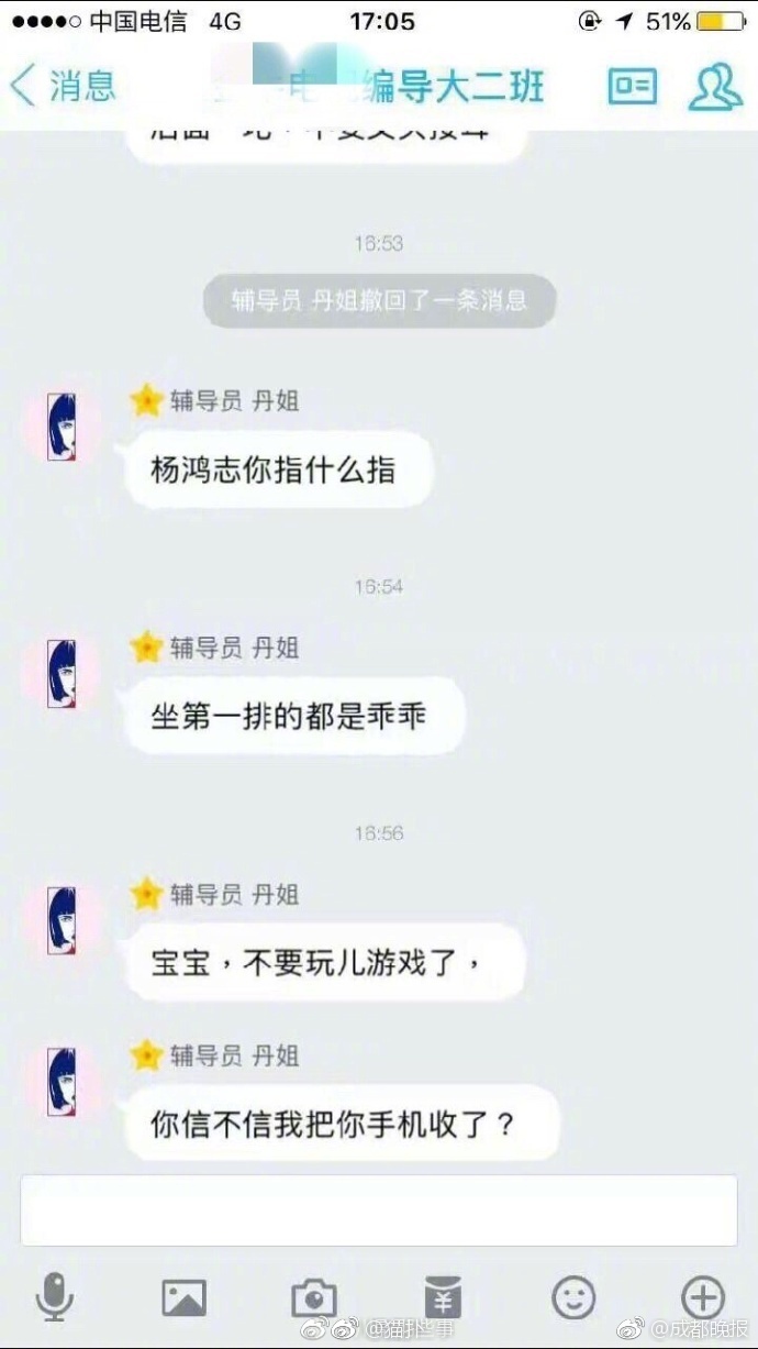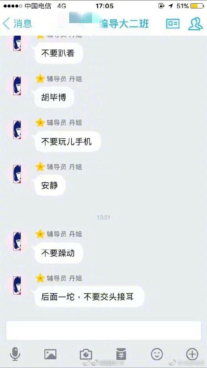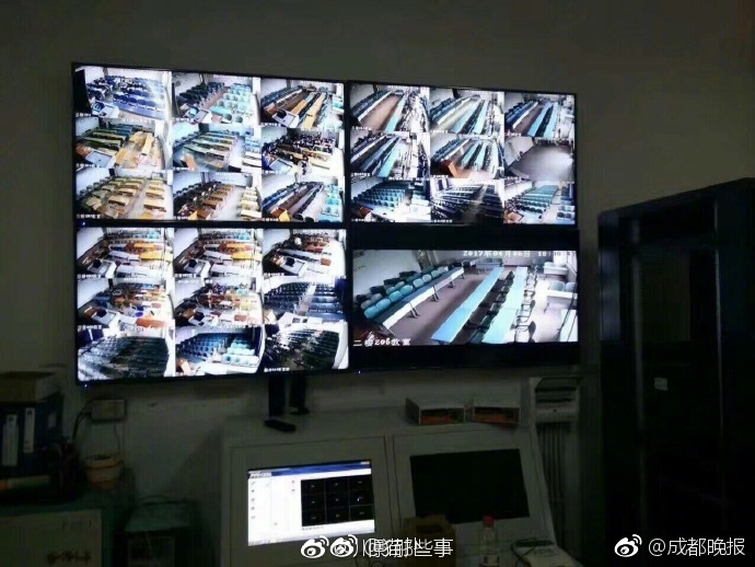 日前,有网友曝出一组图片:四川电影电视学院的一位辅导员通过监控室大屏幕观察同学们在教室的上课情况!并且通过班级QQ群进行实时纠察!