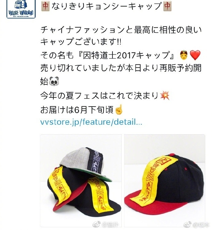 你们对中国风是不是有啥误解?这个帽子带上去会不会就莫名的走路就想蹦一蹦啊!(图:坂本)