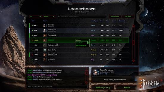 排行榜可以查询到排名前面的玩家,也可以用个人资讯名称或BattleTag来搜索特定玩家。你可以认识到技术相近的新朋友,或是直接在排行榜查看他们是否在线上。