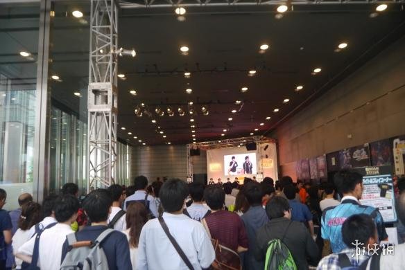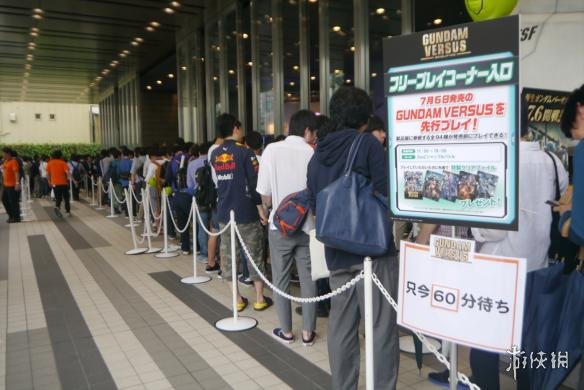 《高达VS》自由游玩区,依序等待游玩的玩家们排成相当长的队伍