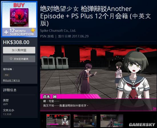 港服PS商店近日举办了特惠,购买《绝对绝望少女 枪弹辩驳 外传》,就赠送12月PS+会员,售价308港币,十分划算,另外商店页面还特意说明,2017年6月29日至7月5日期间购买的玩家,2017年6月29日至7月5日期间购买;而2017年6月29日至7月5日期间购买的玩家,将于2017年7月28日收到兑换代码。