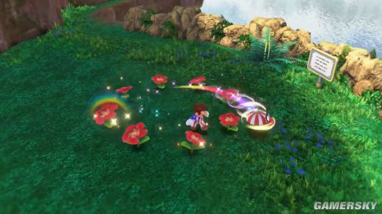游戏预告片本身没有太多新内容,都是此前已经公布过的预告。不过官方再次确认了游戏将支持简繁体中文。从预告片中可以看出游戏的内容更将会比较丰富,场景有城市,沙漠,寺庙等等。玩法上,涵盖了马里奥以往几乎所有玩法,另外马里奥还可以变身成炮弹,小鱼等等。