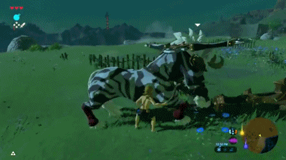 关于DLC中新加入的超高难度“大师模式”(Mater Mode),任天堂也是早有预告,不少玩家也都做好了心理准备。不过看来这一次他们是太过低估了老任的恶意(那可一点都不比宫崎英高要少)——根据微博网友“Nintendokyo”的介绍,在大师难度开场玩家们就会遇到一只金甲银色人马,而这时候你还只有三颗星、几乎没装备、武器嘛,只有小树枝...不多说了,大家来看看这位网友制作的gif吧。