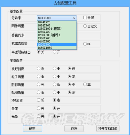 注:如果没有找到自己想要的分辨率,可以点击“打开存档目录”,双击进入Config文件夹,