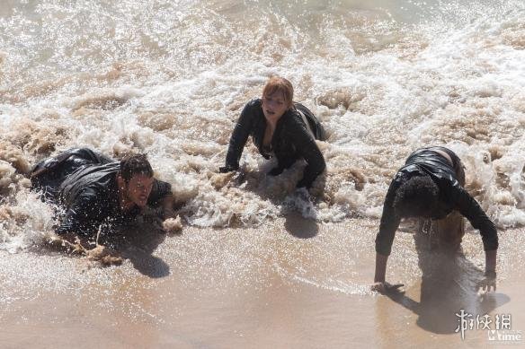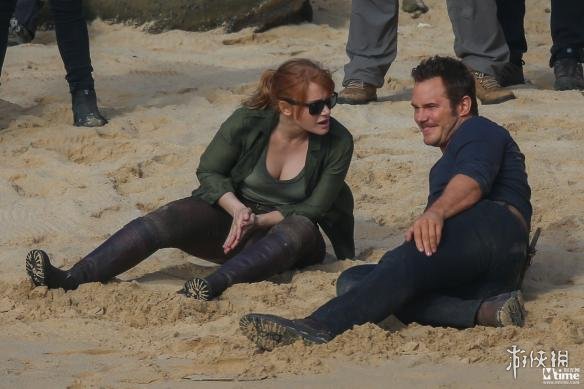 《侏罗纪世界2:失落王国》今日曝光一组全新片场照!帕帕克里斯·帕拉特饰演的欧文与布莱丝·达拉斯·霍华德饰演的克莱尔在夏威夷海边沙滩亮相,男女主角筋疲力尽的躺在沙滩上,看似是在拍一场海上死里逃生戏。