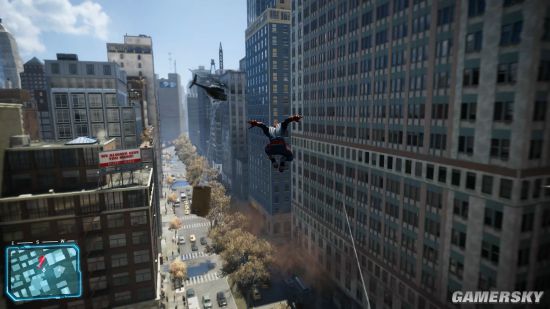 同为开放世界的《日落过载》被设计为鼓励玩家在地图上进行漫游探索,虽然地图尺寸不及《GTA5》和《看门狗2》等作品,但却有丰富的垂直层次。如果《蜘蛛侠》的设计得比《日落过载》还要大几倍,那么漫游的地区应该还是蛮大的。
