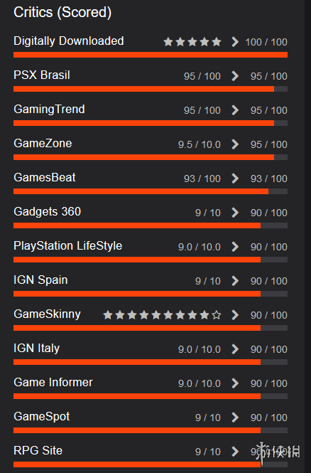 全部媒体评分如下: