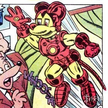 来自地球8311的钢铁侠是一只米老鼠,1985年首次登场于《彼特帕克,惊人蜘蛛侠》#3,真实姓名和起源未知,和主世界616的托尼一样,他也喜欢造战甲,不过他只有2套:一套是马克1,一套是马克2,至于他为何要制造战甲,漫威也没有说,我觉得是天性...