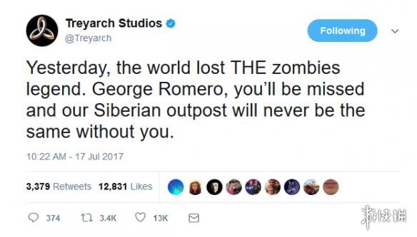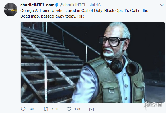 《使命召唤》黑色行动系列的开发团队T组,在悼念推文中表示,一位丧尸传奇离我们而去,缅怀乔治·罗梅罗,游戏中的丧尸地图西伯利亚哨站因为有您而不同。