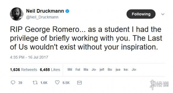 顽皮狗旗下著名丧尸题材游戏《美国末日》的开发总监Neil Druckmann在相关悼念推文中表示:“愿逝者安息,在学生时代,我有幸能和您有简短的合作,如果没有您的启发,《美国末日》是不可能做出来的。”