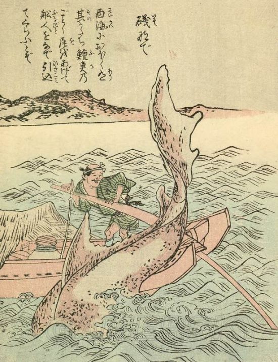 即矶龙卷(矶抚で,いそなで)是传说生活在肥前松浦的西日本近海的怪鱼。江户时代的怪谈集《絵本百物语》对其有所记载。古书‘本草异考’中称之为巨口鳄(おおぐちわに)。