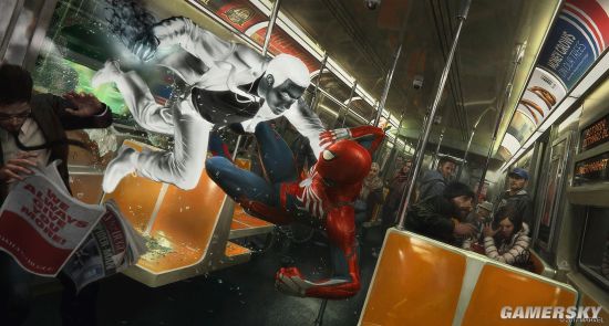 第二张则是Mr. Negative和蜘蛛侠两人在地铁上展开激战,Mr. Negative正向小虫发起进攻,其刺眼的白色,和蜘蛛侠的红色对比强烈,官方表示,大家将会在游戏中看到这一场景。