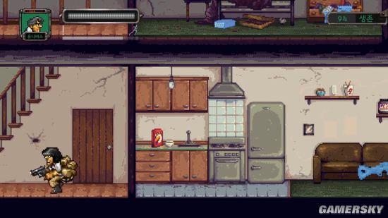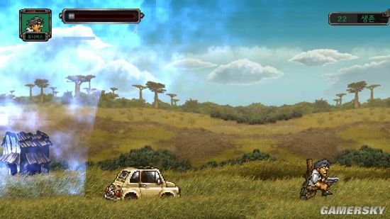 视频来自油管频道팀 유니버스 TEAM UNIVERSE,用2D像素风格将游戏表现了出来,有着浓郁的《合金弹头》的印记。游戏中跳伞、装备收集、毒圈、开车等元素一个不少。