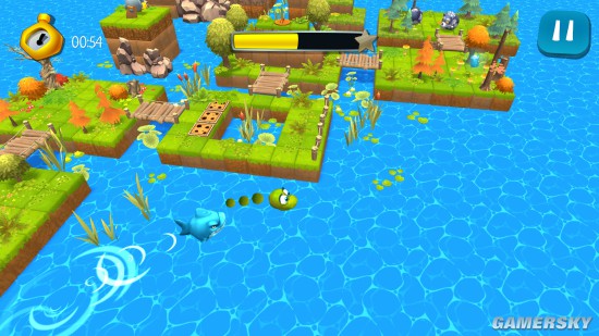 《3D蛇的滚动大冒险(Snake 3D Adventures)》是一款画面十分的精美的休闲益智闯关游戏,玩家需要控制3D蛇在有限制的时间内找到地图的出口,并且通过,这途中必须克服一路上的所有谜题,你需要通过吃鸡蛋来补充能量,因为只有能量充足的蛇才能打开一些机关。