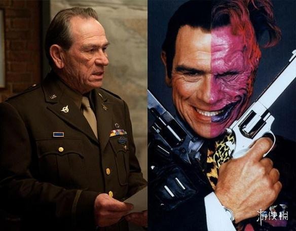 在第三部《永远的蝙蝠侠》中汤米·李·琼斯饰演了双面人这个角色,而在《美国队长》中则出演了美国队长的上司,主导了超级士兵计划。