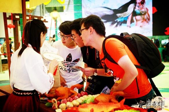 同时,还原游戏中烹饪、四海生金、琴言、照影几大特色玩法的展台游戏,更在现场掀起了一阵修仙热潮。仙家弟子们在包子铺、伞铺、画铺、茶铺接受各项修仙历练,寻找食材、垂钓海产、PK节奏大师、秀套圈技能,享受了一番梦想仙侠与现实情景交织的乐趣。