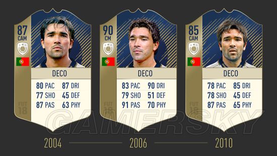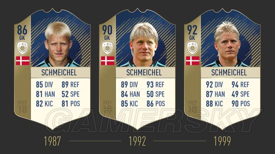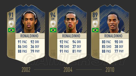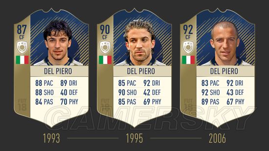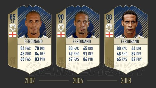 本作包含的16位传奇球星,每位球星将会有三个独立的球员卡以体现其生涯不同时期的能力属性。