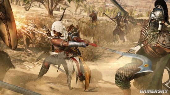如果你在过路的时候巧遇一场混战,你也可以掺一脚——这也是个尝试《刺客信条:起源》新战斗系统的好机会,如果你懒得动手,你也可以通过猎鹰伙伴Senu的鹰眼视角俯瞰全场;当然,你还可以趁乱在战场的尸体上做些小手脚,用剧毒给战斗结束后捡尸体的人制造一个意外“惊喜”。