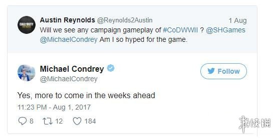 《使命召唤14:二战》支持很多模式,包括单人战役,多人和僵尸模式,最初公布时首个预告片便是聚焦的单人部分,随后在E3上专门展示了多人,而在最近的SDCC上动视则专门展示了僵尸模式。因此对于游戏的单人部分,动视实际上已经很久没有展示了,玩家们也是非常期待。