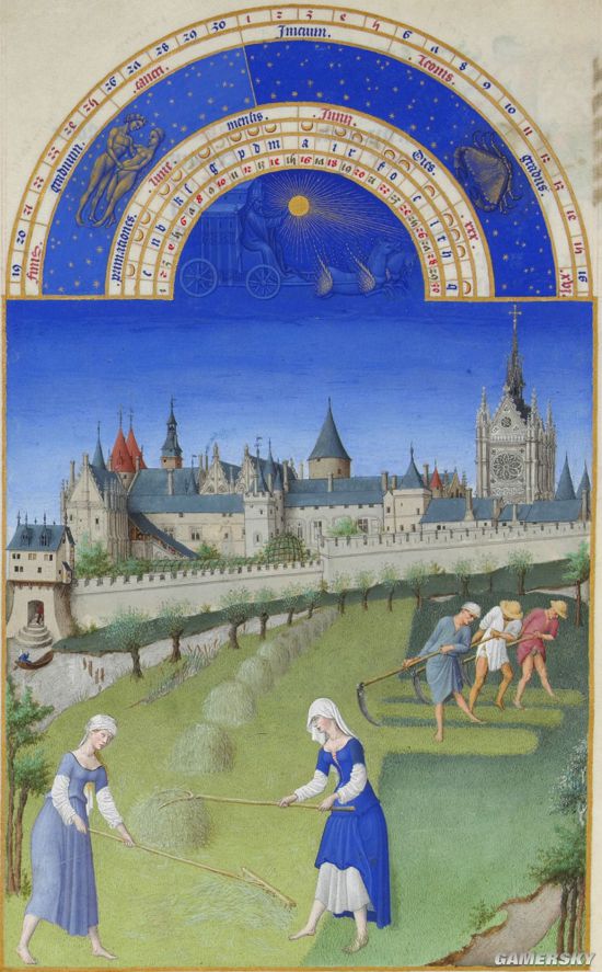 实际上在现实中也有建筑与此相仿,在15世纪的一件称为Très Riches Heures du Duc de Berry的建筑的手稿中就可以看出一些端倪,稿中相当数量的页面就描绘了由蓝白石头构成的宏伟宫殿,农民在下方的田野中工作,天空中悬挂着太阳和星座。