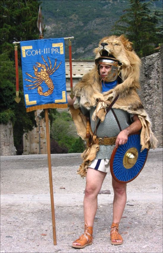 在战场之外,阅兵时,军团旗手Vexillariu和大队旗手Signifer都装备有漂亮的Parma。