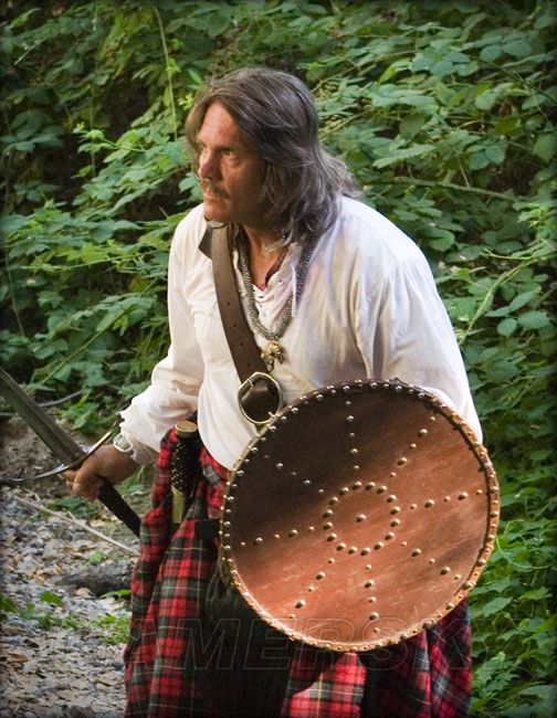苏格兰团牌集攻守与一体。可以趁对方不备直接刺中其要害。也可以在抵挡对方长矛、大刀等的进攻之时,左手用盾心突起的刺刀拨开对方武器,然后用右手武器补上致命一击。盾心大约30厘米长的锥形刺刀,可以根据战斗攻防的需要安上或者卸下。在每个苏格兰圆盾的背部都会有一个长形小口袋,卸下的锥形刺刀可以放在里面。