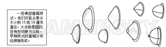 多为金属或者硬皮包边。硬皮可以吸收冲击力,而金属可以强化盾缘。