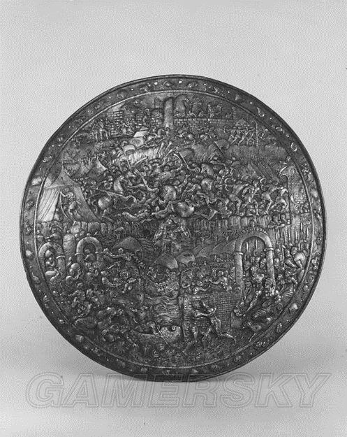 小圆盾和小皮盾的现实原型为Buckler。Buckler多为圆形,偶有方形和椭圆形。故译为小圆盾。Buckler是极具代表性的小手盾。也是最小的小盾。直径20~950px,重1.8千克。小圆盾可以看作单独的盾帽。其实Buckler一词就是从古法语的盾帽boss/urbo派生的。技术上讲,盾牌应该大到用胳膊挂住或者用手臂提住,不过小圆盾用一只手就能拿了。由于方便携带,且有效防护砍、刺,极受弓箭手和步兵的欢迎。其经常搭配武装剑Arming Sword,弯刃大砍刀Falchion,或者迅捷剑Rapier等单手轻武器。11-13世纪小圆盾剑术流行于意大利北部。文艺复兴后,小圆盾变得多样,且广受欢迎,一时间满城尽带小圆盾。17世纪早期,小圆盾成为英国极为流行的平民武器,**甚至为此下令禁止室内的剑盾学校。如MS I.33塔楼剑谱所述,Buckler简单有效,用法也灵活。