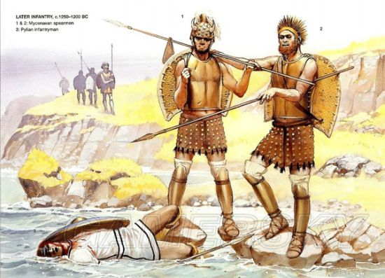 此外,希腊迈锡尼人还有左右开口的8字盾(或者叫蜂腰盾)和单开上口的新月盾Peltaste。