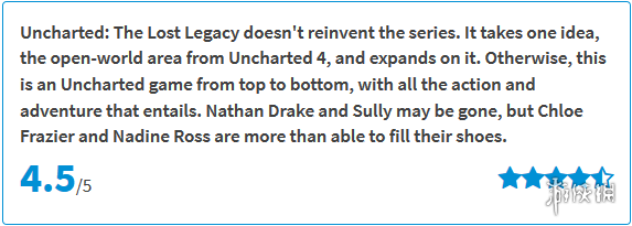 这家媒体在相关的评测中表示,游戏虽然在动作元素方面有些老套,但也毫无否认游戏中的两位主角非常个性独特的冒险让其成为最好的神海游戏之一。