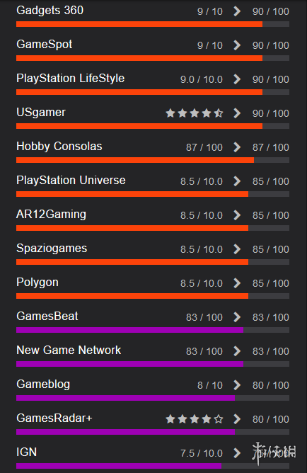 从目前OpenCritic上汇总的26家媒体评分的平均分为87分,整体表现相当优秀。