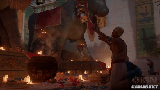 事实上,埃及有许多美丽的绿洲,以及与金字塔一样宏伟的城市建筑,游戏中我们能看到类似地中海的美丽风光,尼罗河上来来往往的船只,繁华的集市。这个2000多年前的世界,绝对不会只是黄沙一片,而是充满野性与魅力的伟大王国。