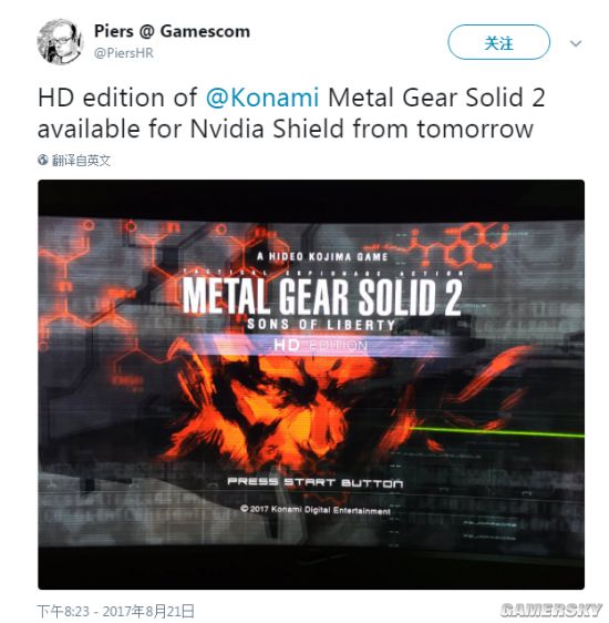 业内分析师PiersHR今日在推特上爆料称,《合金装备2:自由之子》高清版将在明天登陆Nvidia Shield,并且公布了一张图片。