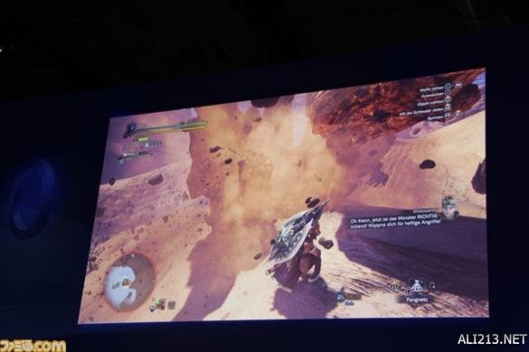 活动开始后,《怪物猎人:世界》的制作人辻本良三、联合总监藤岡要、导演徳田優也登台。在辻本良三感叹“大家能这么热情真的很棒,来到科隆真是太好了”的同时,3人也向前来参加活动的粉丝们进行了问候。然后,立刻进入了实机游玩环节。本次实机演示和在科隆游戏展里的试玩版本不同,展示了刚刚公开不久的新场景“大蟻塚的荒地”的狩猎。顺带一提实机演示的操作担当为徳田優也。