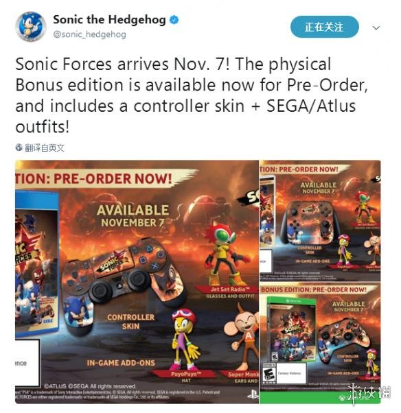 值得一提的是本次《索尼克:力量》也将发售简体与繁体中文版,繁体中文将于11月8日发售,而简体中文版也就是国行版本目前发售时间尚不得知。
