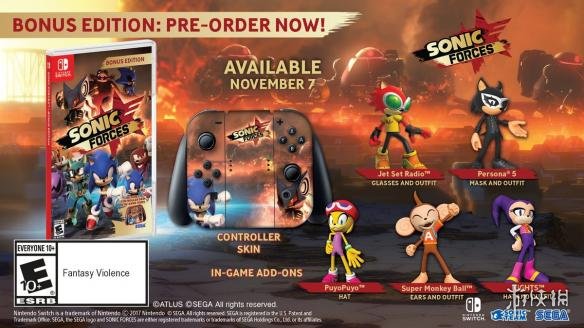 今日,世嘉正式宣布旗下当家游戏角色“索尼克”最新一作《索尼克:力量(Sonic Forces)》将在11月7日正式发售,同时即日起开启预售,参与预售的玩家除了能够获得游戏主题的手柄贴纸之外还能得《女神异闻录5》和《街头涂鸦》游戏的主题装扮。