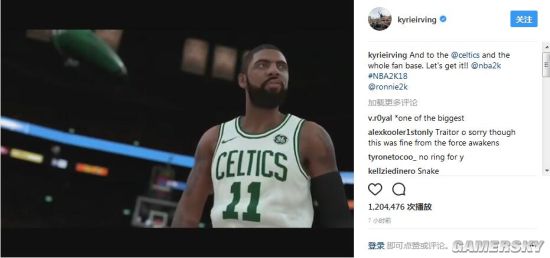 另一方面,前一阵闹得沸沸扬扬的欧文换队事件在今天也有了新进展。凯里欧文在自己的Instagram上就公布了一段很短的视频:游戏中的欧文身披凯尔特人11号球衣站在TD北岸花园球场。