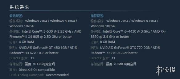 不过推荐配置这里,商店页面写成了70MB……应该是和最低配置一样的70GB。