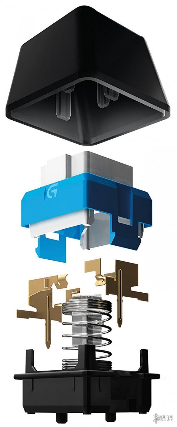 Romer-G轴的设计,手敢据称接近于Cherry茶轴,安静而有段落感,虽然没有多的自定义键,但是F1~F12都可以自行定义。虽然也没有手腕可以靠的地方和延伸的USB功能,但数字键上方也有滚轮式音量键调整设计,当然也少不了电竞信仰的七彩霓虹灯!