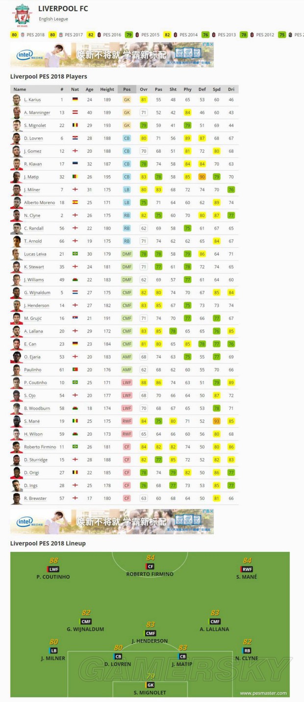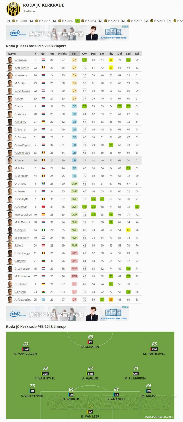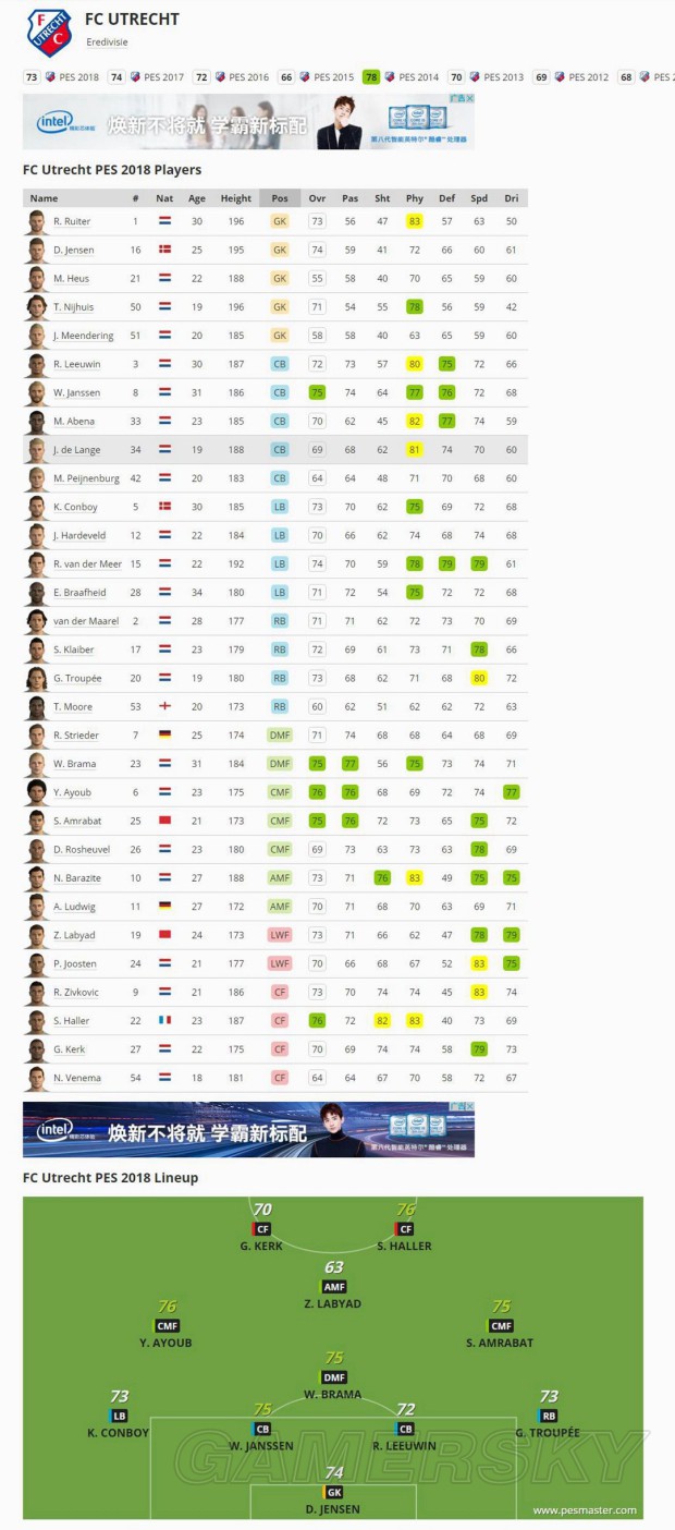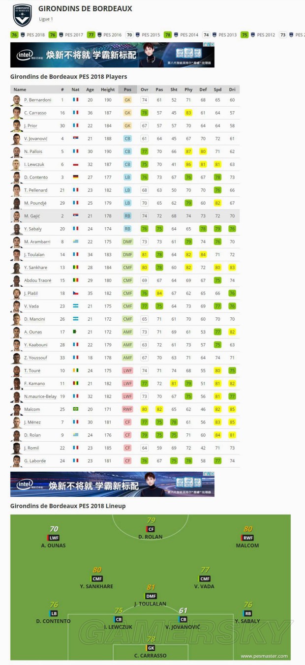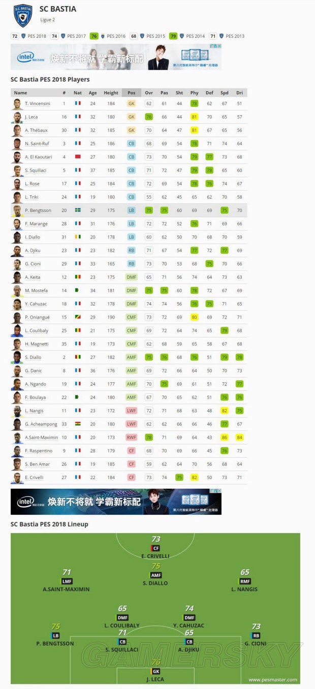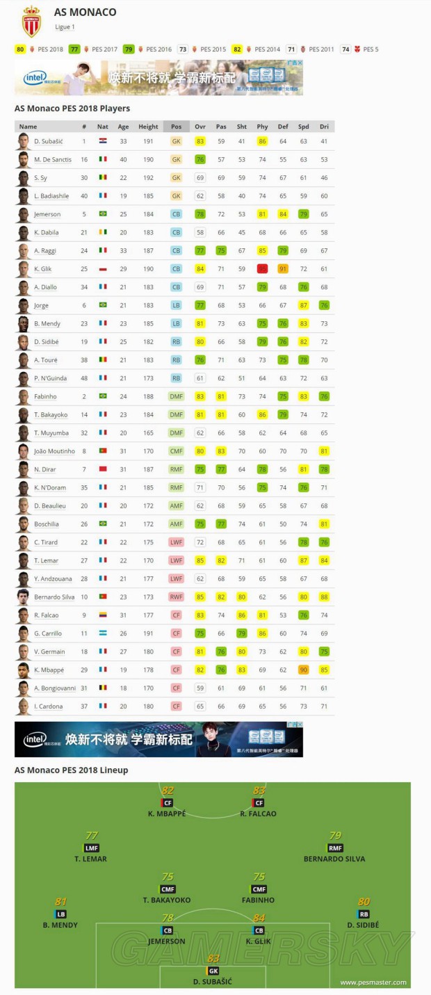 《实况足球2018(PES2018)》中有上万名真实球员,400多支球队,每个球员和球队的数据都根据现实中的球员表现进行评分,下面为大家带来官方全球队、球员数据库,对球员、球队数据感兴趣的玩家不要错过。