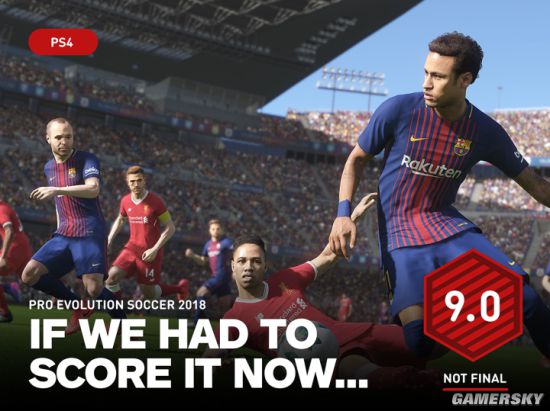 科乐美的体育大作《实况足球2018》将在今年9月12日发售,目前已经有媒体玩到了本作,并进行了离线单人的评测试玩。IGN今天公布了他们《实况足球2018》打出的临时评分——9.0分。接下来,在游戏发售后他们还会对游戏的线上模式进行评测,以得出最终的游戏评分。