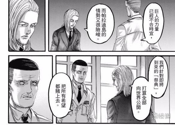 《进击的巨人》漫画97话汉化版来了,这次有几个重要的角色登场,其中一个应该是很久都没登场的人,另外战锤巨人的家族也登场了。这段时间漫画一直以莱纳的回忆来讲述马雷帝国这边的计划,墙内的事情完全没有提到,也是让大家心焦什么时候才能回到主线上来。这样看来应该是已经回归到主线上了,只是主角登场的情况让人没有想到。
