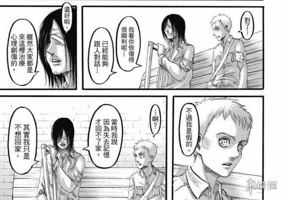 故事的前半部分还是莱纳的回忆,他想到在墙内的时候和艾伦他们一起生活、战斗的情形。各种回忆也是让他痛苦不堪,不过怎么说艾伦他们也是一起战斗过的同伴,欺骗和背叛都让莱纳很痛苦,他想到了自杀。