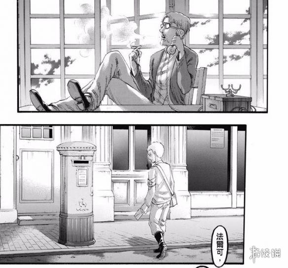 之前被莱纳鼓励的,要继承巨人之力的男孩法尔可正在想要去找他聊聊,但是最终没见到莱纳。他在离开的时候被之前帮助过的受伤的黑发男子叫住了,在两人的聊天中,这个男人似乎有很多的故事和秘密。其实这个男人是谁大家心里都应该是有数了,最后他让法尔可帮他邮寄一封信,估计这封信会带来很大的动荡。